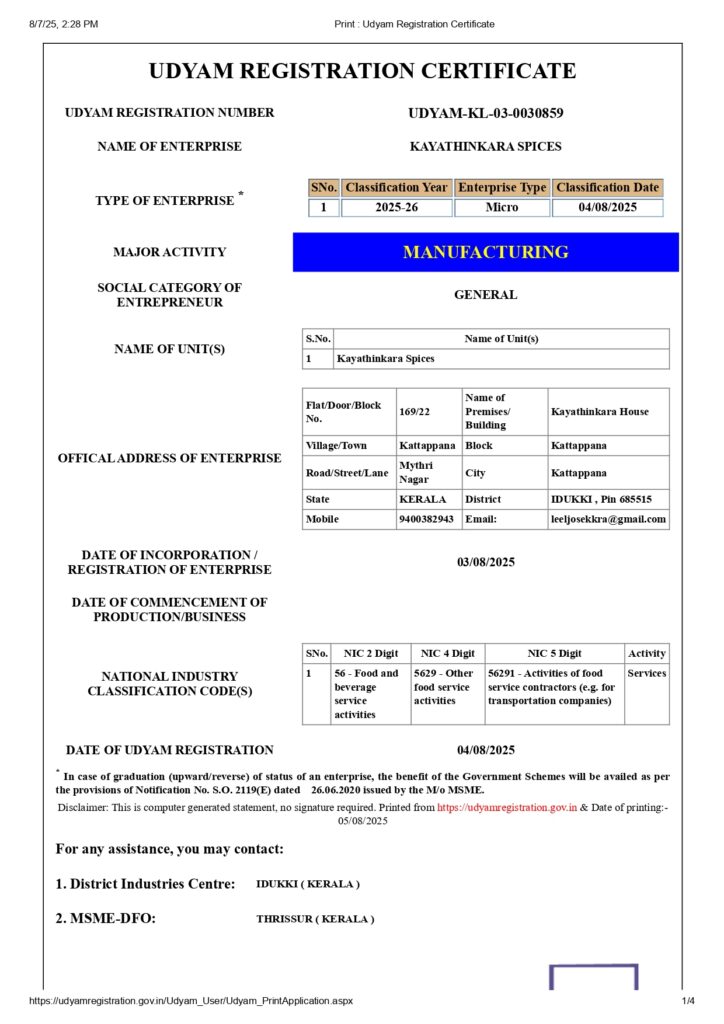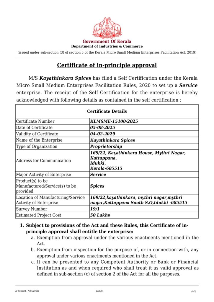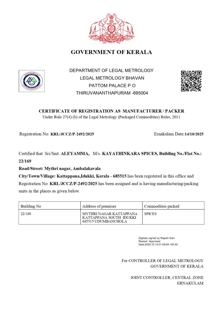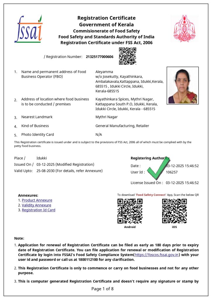 At Destiny of Spices, transparency, authenticity, and customer trust are at the core of our operations. This page provides access to our official legal registrations and certifications that ensure our products meet required quality, safety, and regulatory standards.