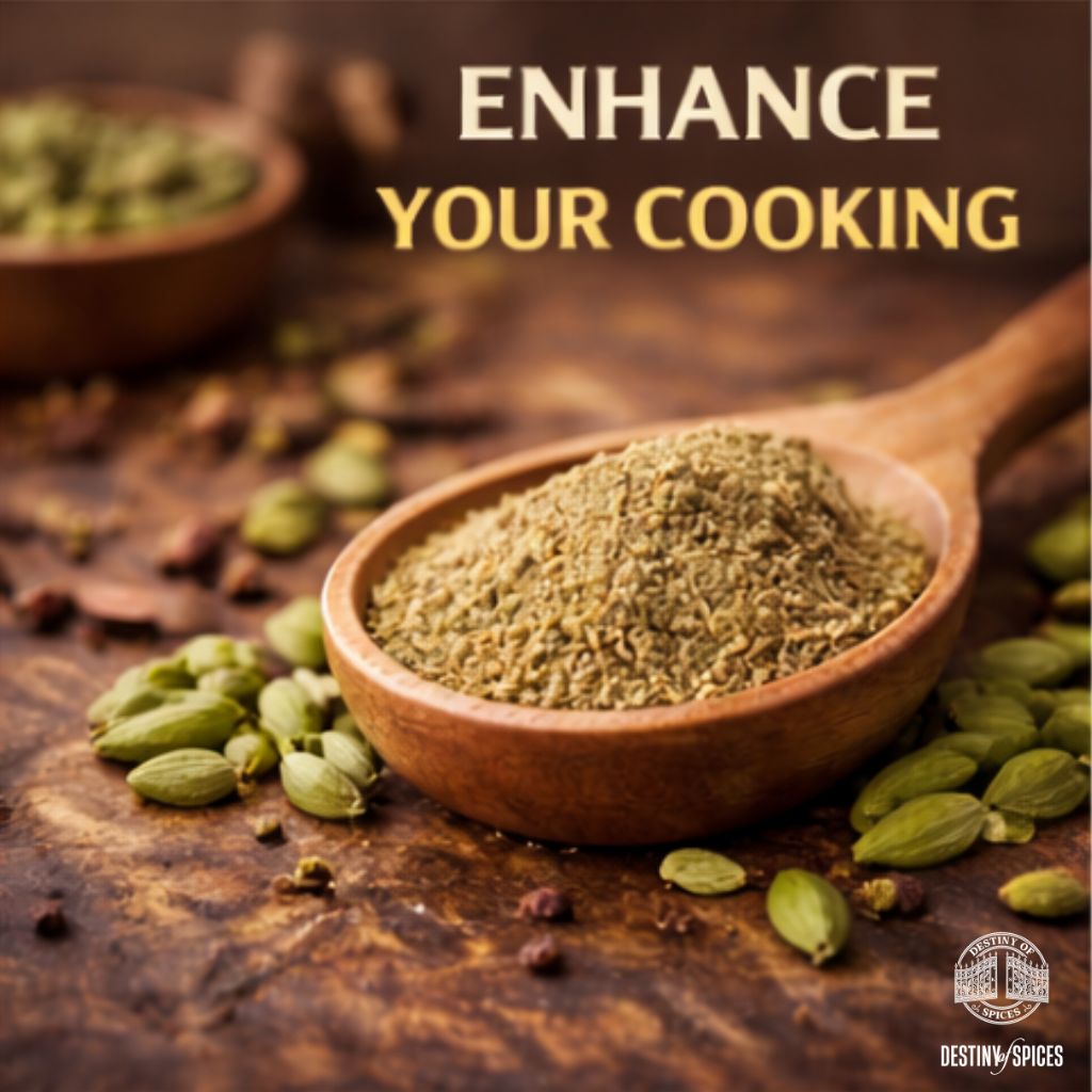 Freshly crushed Destiny of Spices green cardamom enhances: